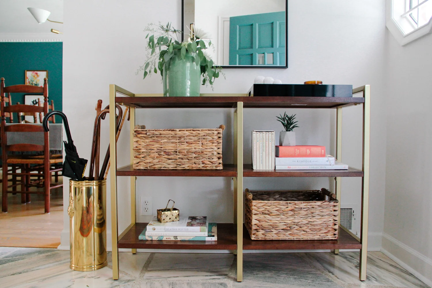 This set us on a crusade to find a suitable replacement, but nothing truly measured up. Though there were definitely a few pieces out there with that modern caning look we were after, none had the measurements right for the space. Ultimately, we moved forward with an affordable option from Target because it was well suited for her young family's lifestyle and (equally important!) still cute with its clean brass and walnut styling.