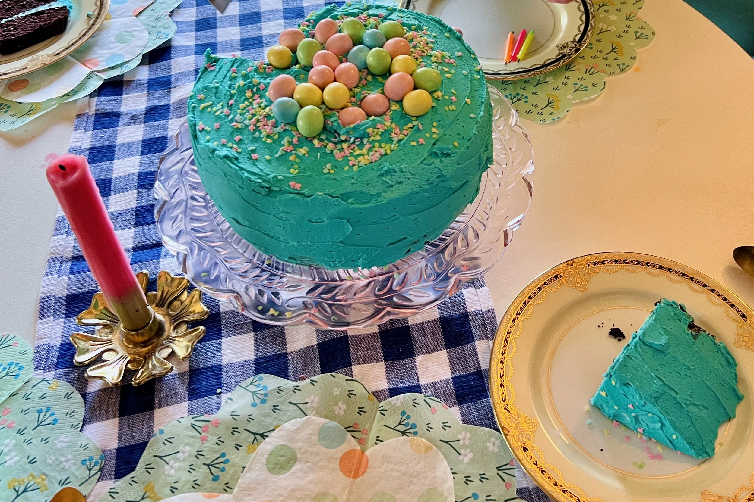 I realize a cake isn’t the first thing that comes to mind when planning a typical Easter fete, but if you’ll indulge me a moment I have one more idea to share that may benefit a smattering of you.
